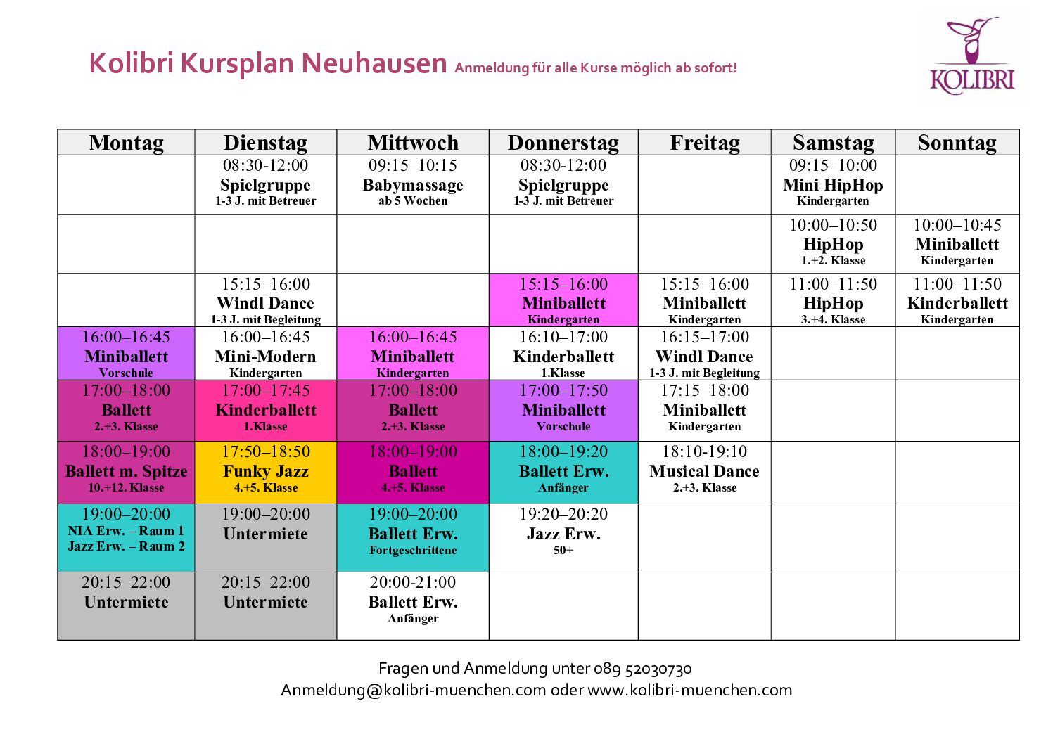 Liebe Eltern, liebe Kinder, liebe Teilnehmer, ab sofort wird Kolibri das Ballettstudio Dagmar Eltze-Keller übernehmen.